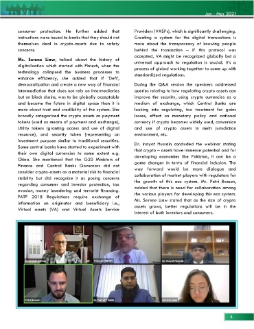consumer protection. He further added that Providers (VASPs), which is significantly challenging.